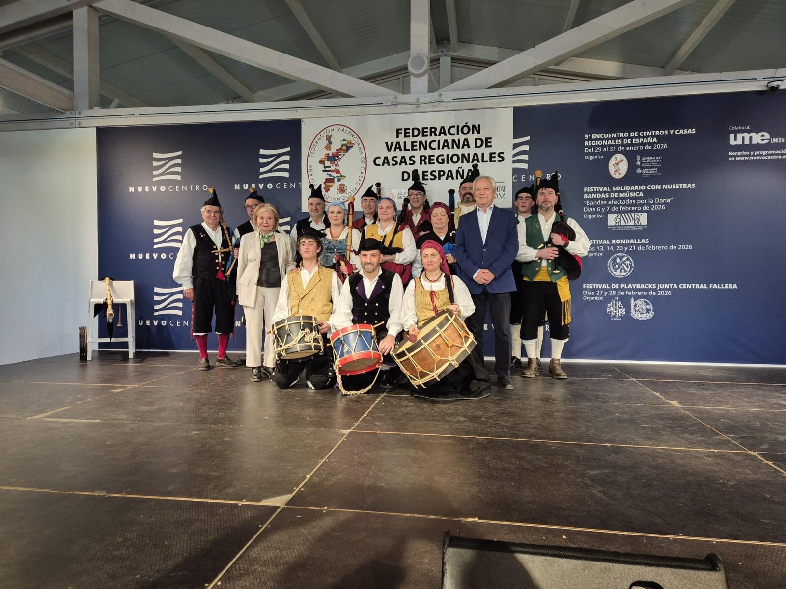 Los pasados 29, 30 y 31 de Enero se celebró en el Centro Comercial de Nuevo Centro el, V Encuentro de Casas Regionales, organizado por la Federación Valenciana de Casas Regionales de España. Encuentro en el que participó la Casa de Asturias en Valencia con un Stand, pudiendo mostrar la cultura, paisajes y folclore de Asturias a todas las personas que nos visitaron. El Principado de Asturias nos acompañó, de la mano de la Presidenta del Consejo de Comunidades Asturianas, María Antonia Fernández Felgueroso, que compartió con nosotros los días de estos Encuentros, y a la que agradecemos de corazón su presencia. También nuestro agradecimiento para Nuevo Centro, que nos permitió, un año mas, llevar a cabo estos Encuentros